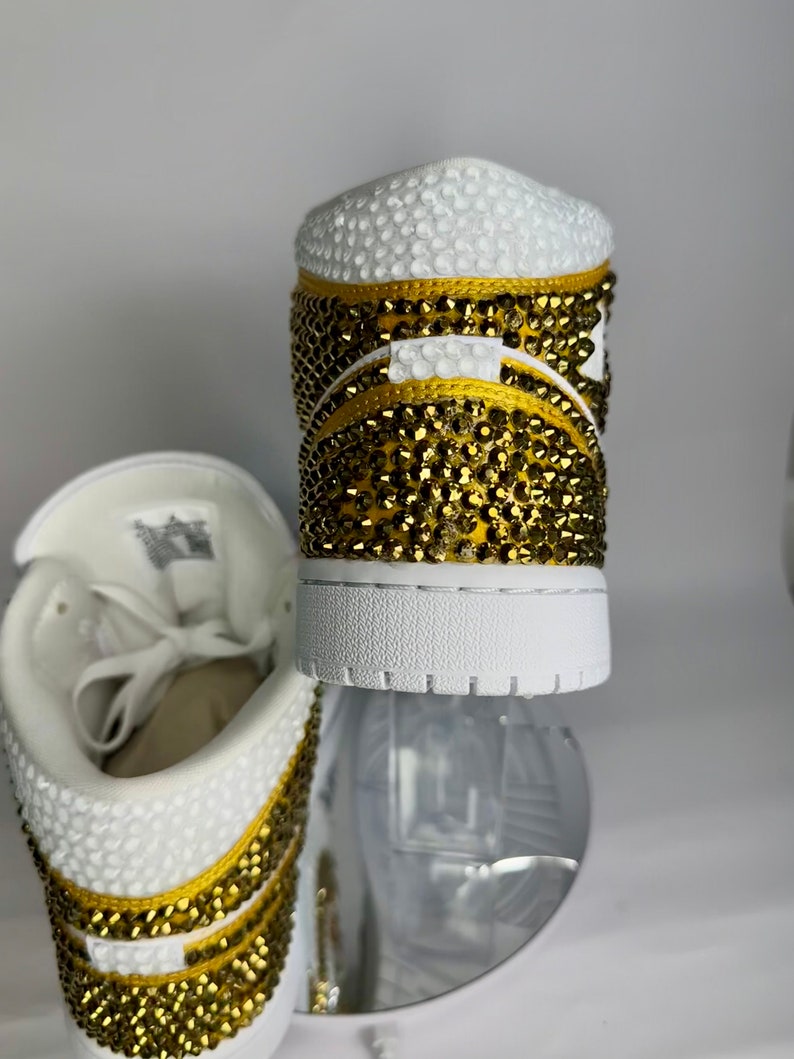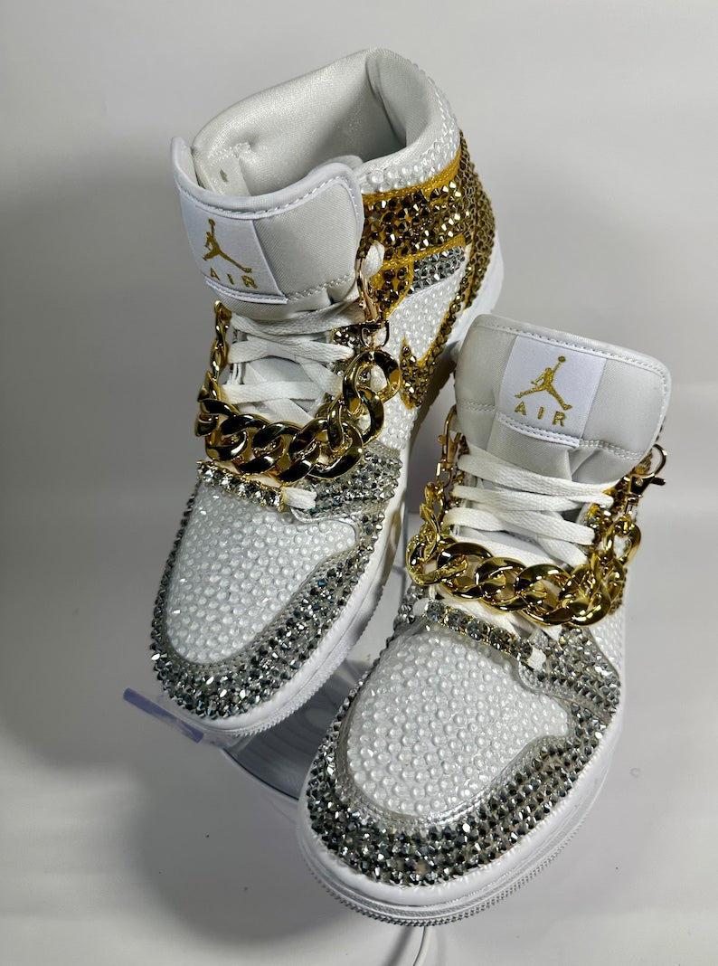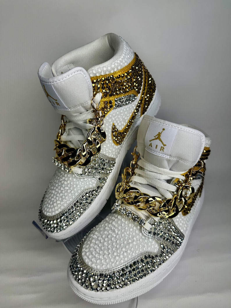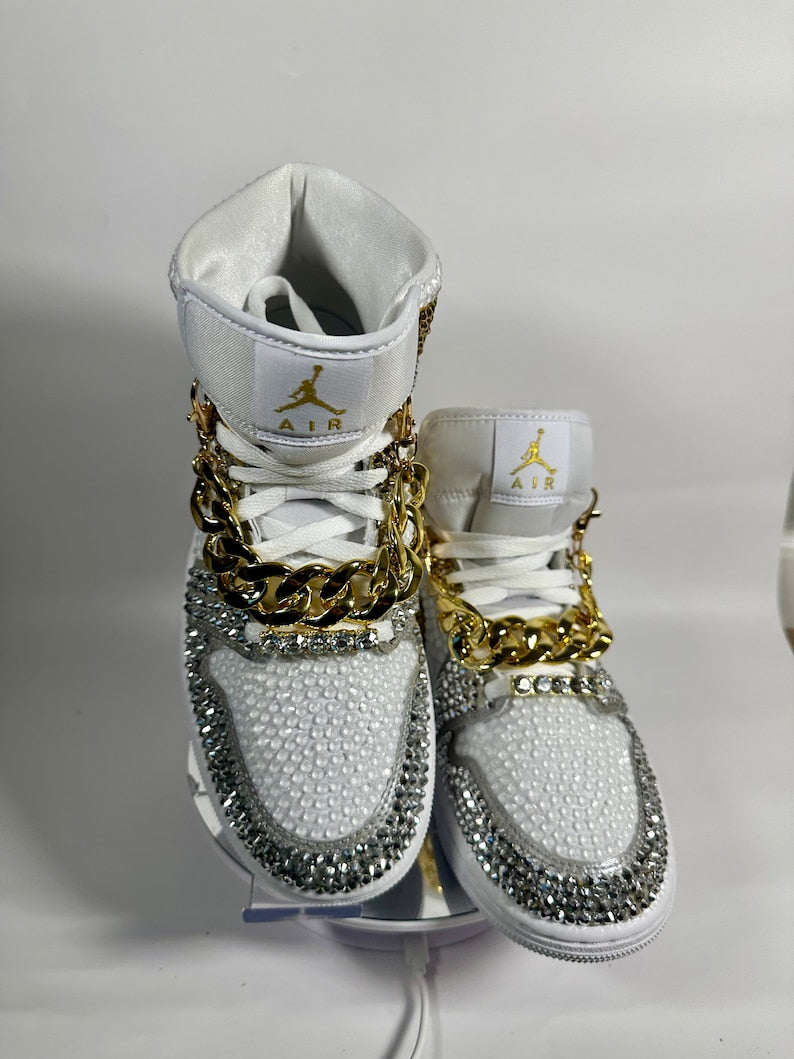 Mejora tu estilo deportivo con unas Jordan 1 mids llenas de brillo. ¡Son el complemento perfecto para una fiesta de graduación, un cumpleaños, una boda, una salida nocturna o tu próximo evento! Puedes personalizarlas con los colores que prefieras. ¿No buscas Jordan 1? Envíame un mensaje con tu elección de zapatillas. Me encantaría crear las zapatillas personalizadas de tus sueños.